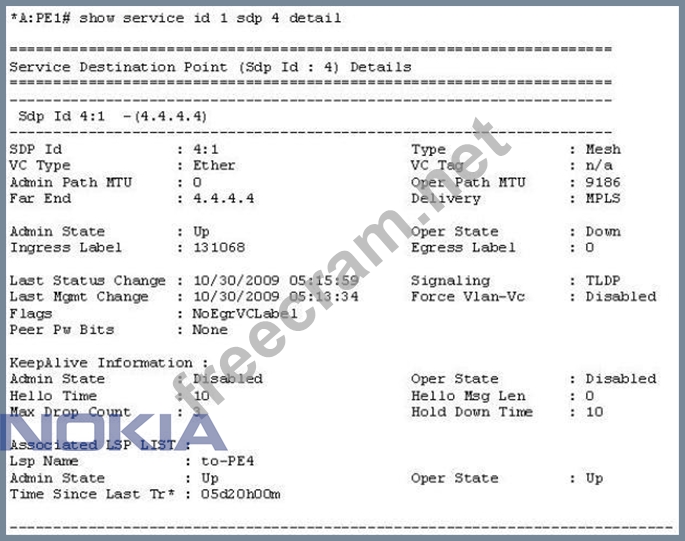 Question 204: An SDP has been configured for a VPRN service using an exist...