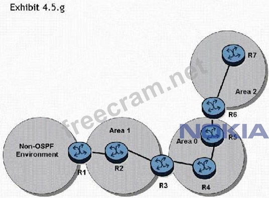 In the topology shown, router R1 is an ASBR configured to export external routes to OSPF. Assuming that there are no stub networks, which of the following statements regarding type 4 LSA generation is true?