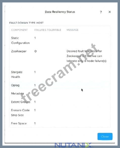 Refer to the exhibit. An administrator notices that the Data Resiliency Status of some components has been reduced to 0. making it impossible to support a node failure in the cluster. What failed component caused this issue?