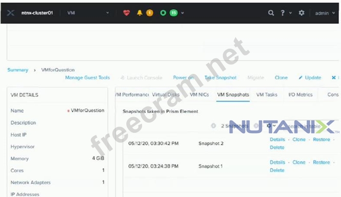 Refer to the exhibit. Management has tasked an administrator to restore the VM, VMforQuestion to a previous point in time (3:20pm), to recover from a corrupted set of files. Which snapshot should the administrator choose, and which action(s) should be executed?