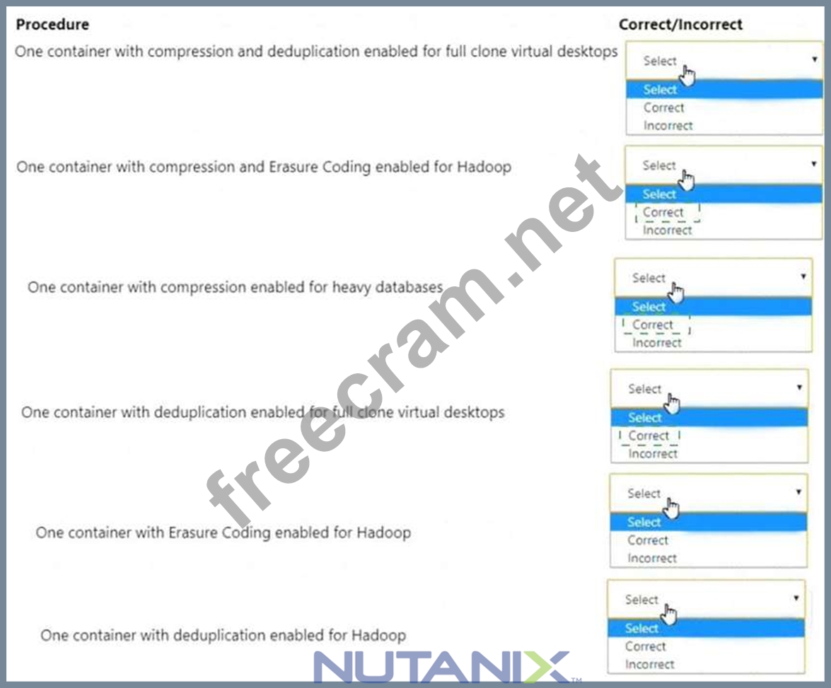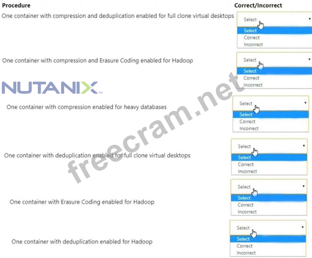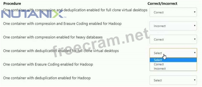 For each procedure, indicate whether it is a correct or incorrect procedure that must be configured to meet the item requirements using the drop-down option.