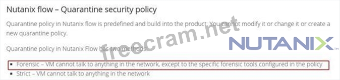 An administrator of a Nutanix Enterprise Cloud has microsegmentation enabled and a firewall VM installed. The security team notifies the administrator that one of the VMs hosted in the environment has been exhibiting suspect network activity. The administrator wants to isolate the VM from the production network, but must still be able to access it to perform diagnostics. What should the administrator do to meet the requirement?