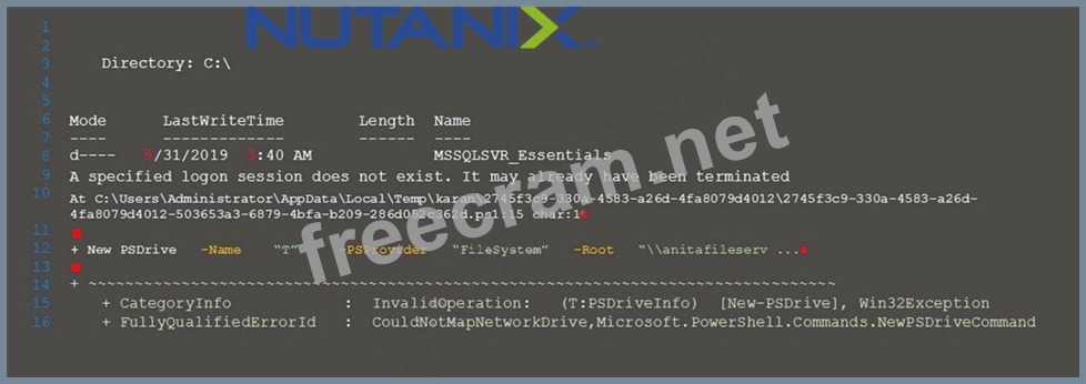 Calm encountered the error shown in the exhibit when importing a script that maps a network drive.