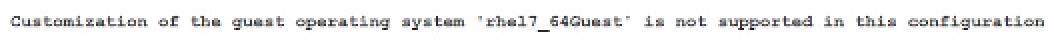 The error message indicates that customization of the guest operating system is not supported. This issue often arises because open-vm-tools is not installed or not running on the Redhat Enterprise Linux VM. open-vm-tools is necessary for vSphere to perform guest customization tasks, such as setting the hostname, IP configuration, and other initialization tasks. References: * Nutanix documentation on Guest Customization Requirements. * VMware documentation on Installing Open VM Tools.