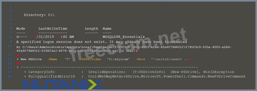 Refer to the exhibit. Calm encountered the error shown in the exhibit when importing a script that maps a network drive. Upon further investigation, the Calm administrator was unable to run the script manually on a VM and discovered that elevated permissions were needed. Which command should the administrator add to the script?