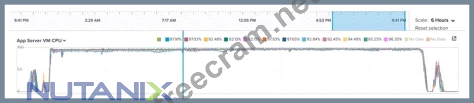 In this case, the administrator wants to investigate the performance of a core banking system that consists of application servers and database servers. The application servers have high CPU utilization during business hours, which may indicate a bottleneck or a resource contention issue. The administrator needs to review multiple metrics in Prism Analysis Graphs to identify the root cause and determine if there is a problem with the app servers only, or with other components as well. The metrics that are relevant for this analysis are: * Cluster IO: This metric shows the input/output operations per second (IOPS) and throughput (MBps) of the cluster. It can help to understand if there is a high demand for disk IO from the VMs or if there is any latency or congestion in the storage layer. * Cluster CPU: This metric shows the CPU utilization (%) and load average of the cluster. It can help to understand if there is enough CPU capacity in the cluster to handle the workload or if there is any imbalance or contention among hosts. * Cluster Memory: This metric shows the memory utilization (%) and available memory (GB) of the cluster. It can help to understand if there is enough memory capacity in the cluster to support the VMs or if there is any pressure or swapping in the memory layer. * Network: This metric shows the network throughput (MBps) and packets per second (pps) of the cluster. It can help to understand if there is enough network bandwidth in the cluster to transfer data between hosts and VMs or if there is any congestion or packet loss in the network layer. * App Server CPU: This metric shows the CPU utilization (%) and load average of each application server VM. It can help to understand if thereis any variation or anomaly in the performance of each app server or if there is any correlation with other metrics. * Database Server CPU: This metric shows the CPU utilization (%) and load average of each database server VM. It can help to understand if there is any variation or anomaly in the performance of each database server or if there is any correlation with other metrics.