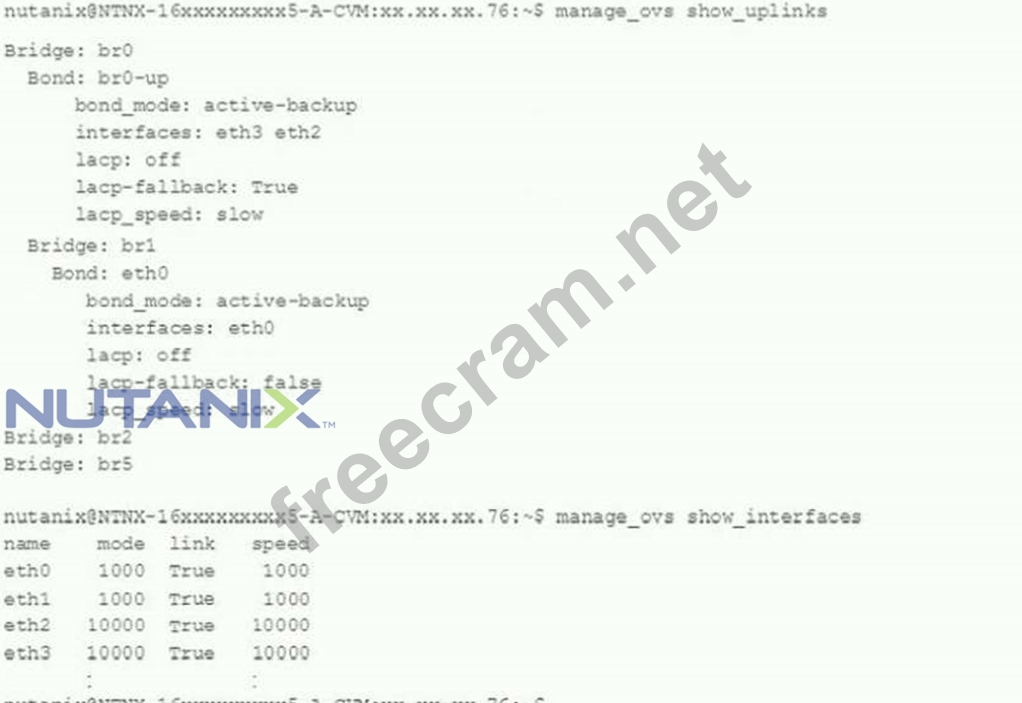 An administrator inherits a new Nutanix environment and logs in to a CVM to check the network configuration. The configuration is as follows: