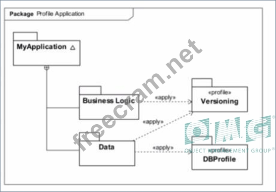 In UML, profiles are applied to specific model elements to adapt the UML metamodel to different domains or platforms. The provided diagram shows a UML package diagram within which the «Versioning» profile is applied to the "Business Logic" package, and the «DBProfile» is applied to the "Data" package. This is a correct use of profiles in UML as they allow the customization of parts of a model by applying additional constraints and stereotypes to specific packages or classes. There is no restriction in UML that a profile cannot be applied to multiple packages in the model simultaneously, and profiles do not necessarily need to be members of the namespace of the model they are applied to; they can be defined externally. Therefore, the scenario presented is a correct application of two different profiles to two distinct packages within the same model, conforming to the UML 2.x Superstructure Specification.