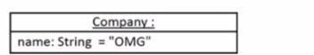 Choose the correct answer: Consider the following class definition: Which diagram fragment shows an instance of the Company class in which name has the value OMG?