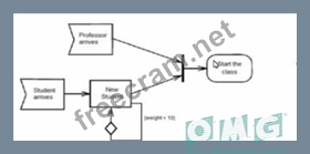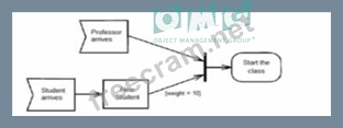 The correct answer is Option B based on its visual representation and alignment with the given scenario: * Class Start Condition: Both diagrams (Option B and Option C) include a decision diamond labeled "10 Students Present?". This captures the condition for the class to start. * Professor Arrival: Option B explicitly shows the arrival of the professor using an action rectangle labeled "Professor Arrives". This directly addresses the second part of the scenario where the professor's presence is required. * Start Activity: Both Option B and C have a subsequent activity labeled "Start Class". Why Option B is More Accurate: While both Option B and Option C depict the 10 student condition, Option B goes a step further by including the professor's arrival as a separate action, making it a more precise representation of the two-part requirement for the class to start. Other Options Analysis: * Option A: This diagram lacks the "10 Students Present?" condition and the professor's arrival, making it unsuitable for the given scenario. * Option D: This diagram entirely misses the concept of students or the professor, focusing on a different situation. References * UML 2.5.1 Specification (Superstructure): Sections on Activity Diagrams, Decisions, and Actions https://www.omg.org/spec/UML/2.5.1/
