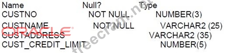 Question 119: Examine the description of the CUSTOMERS table: (Exhibit) Yo...
