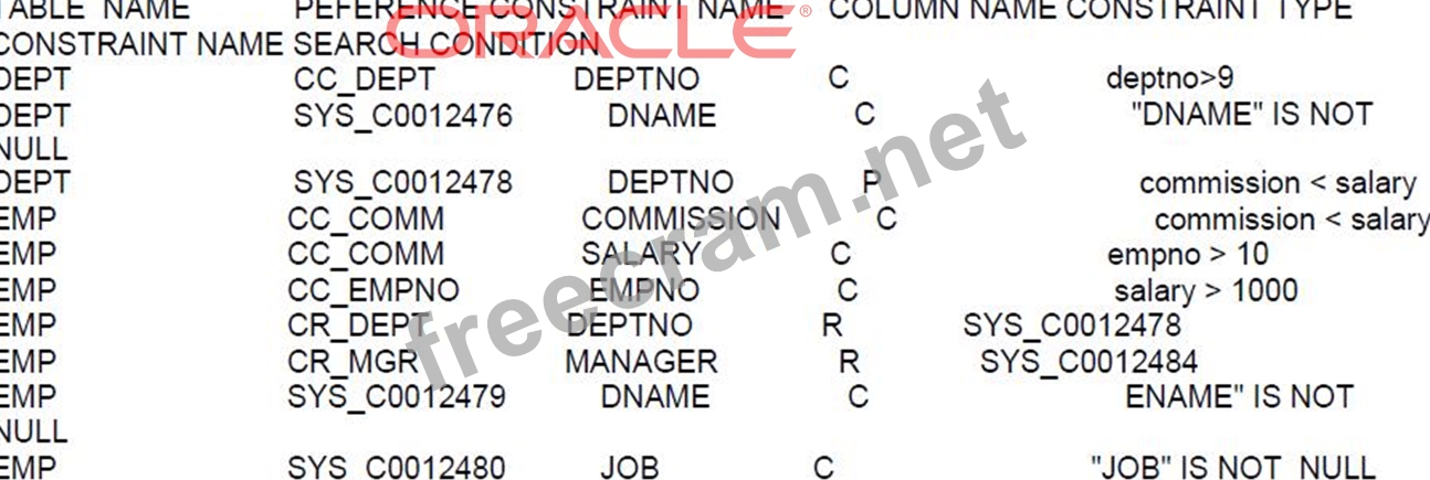 Question 121: Examine these statements: CREATE TABLE dept ( deptno NUMBER ...
