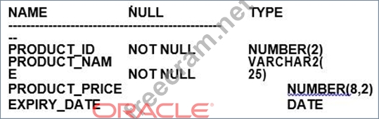 C . EXPIRY_DATE contains the SYSDATE by default if no date is assigned to it. (Incorrect) Unless explicitly specified, a date column does not default to SYSDATE. A default value must be set using the DEFAULT clause during the table creation or altered later.