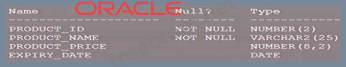 B . This statement is true. PRODUCT_ID has the NOT NULL constraint and is of type NUMBER, making it eligible to be a PRIMARY KEY. Primary keys require all values to be unique and not null.