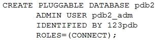 Examine the command for creating pluggable database PDB2 in container database CDB2. Select three options, any one of which is required for it to execute successfully. (Choose three.)