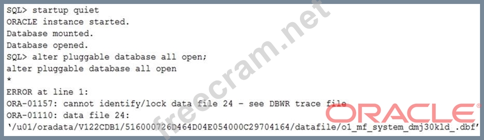 Question 105: You execute this command successfully: SQL&gt; ALTER DATABAS...