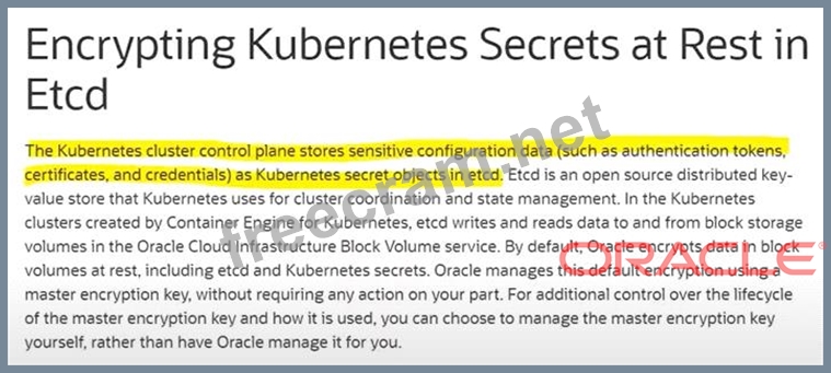 Where is sensitive configuration data (like certificates, and credentials) is stored by Kubernetes cluster control plane?