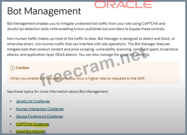 Question 47: Bot Management in OCI provides which of the features? Select...