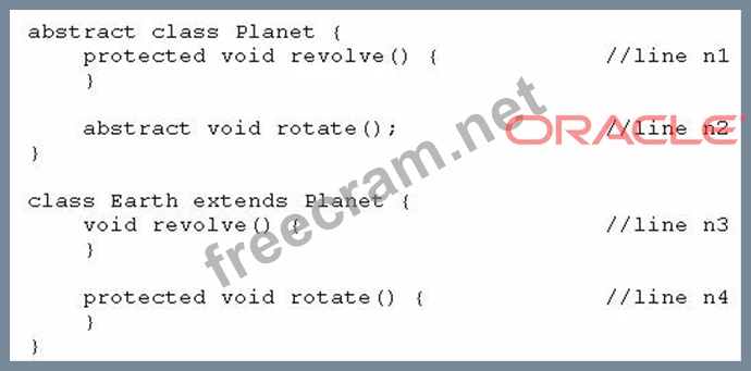 Which two modifications, made independently, enable the code to compile? (Choose two.)