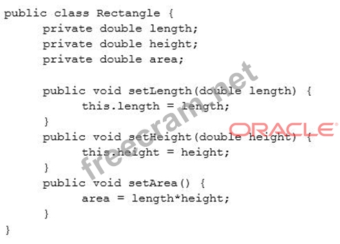 Which two changes would encapsulate this class and ensure that the area field is always equal to length * height whenever the Rectangle class is used?