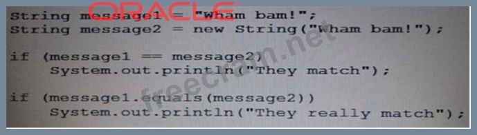 Question 59: Given the code fragment: String h1 = "Bob"; String h2 = new ...