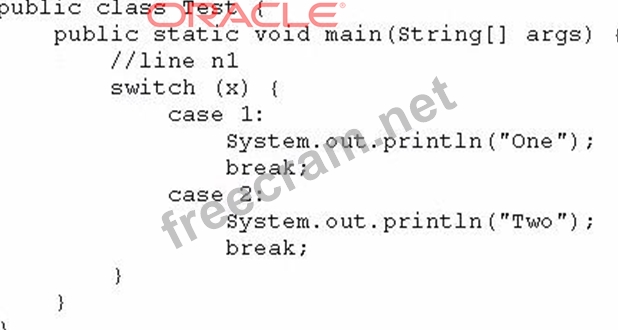Which three code fragments can be independently inserted at line nl to enable the code to print one?