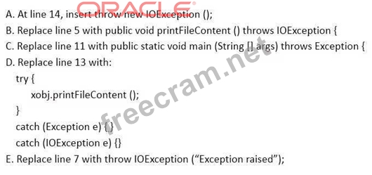 Question 103: Given the code fragment: (Exhibit) Which two modifications s...