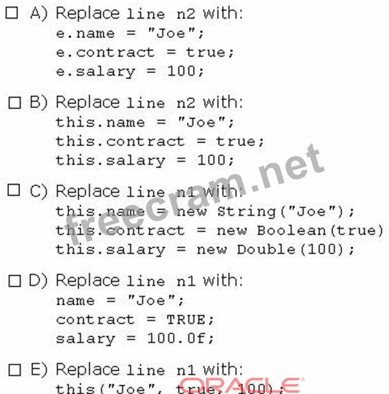 Question 103: Given the code fragment: (Exhibit) Which two modifications s...