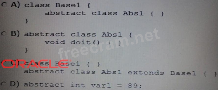 Question 161: Which code fragment is illegal? (Exhibit)...