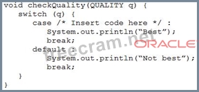 Which code fragment can be inserted into the switch statement to print Best?