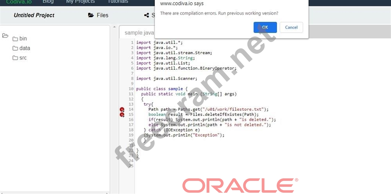 Question 50: Given: (Exhibit) Assume the file on path does not exist. Wha...