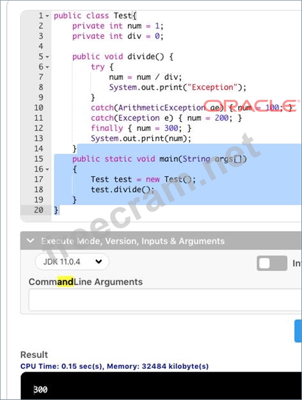 Question 60: Given the code fragment: (Exhibit) What is the result?...