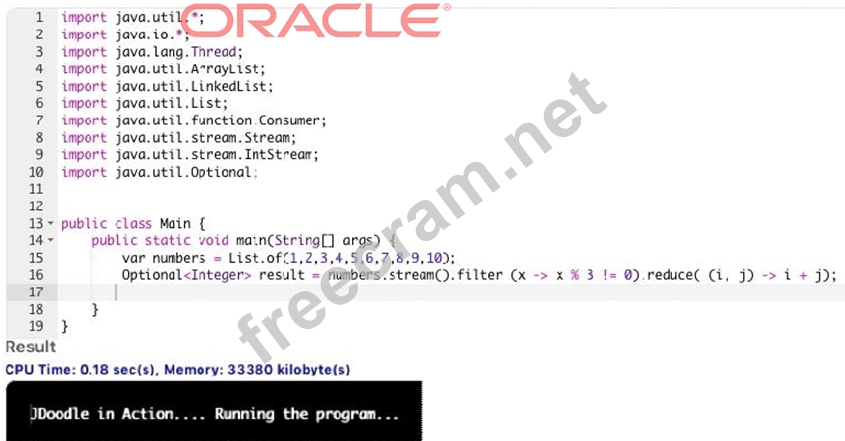Question 63: Given the code fragment: (Exhibit) What is the result?...
