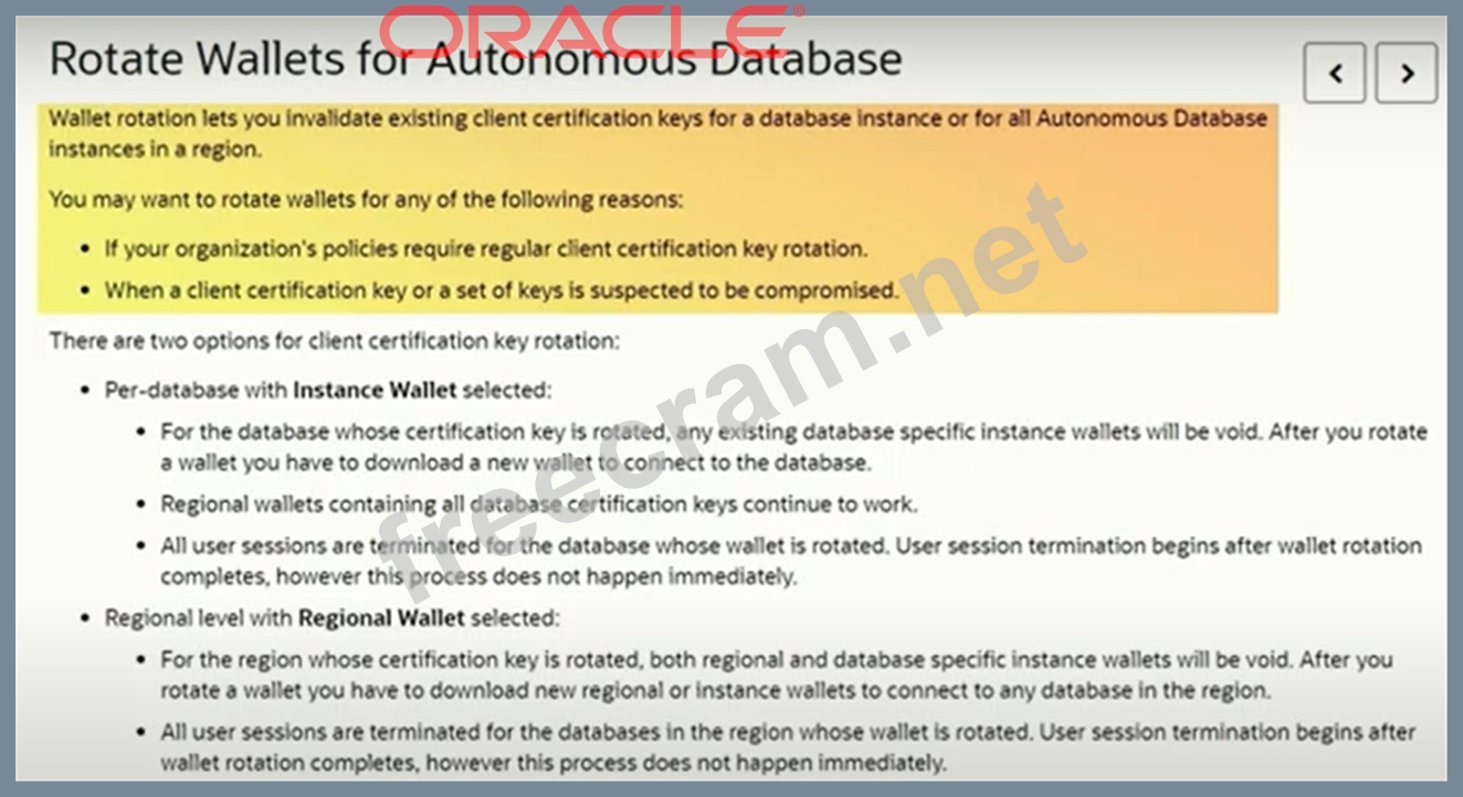 Question 62: An Autonomous Database (ADB) user with an instance wallet ha...