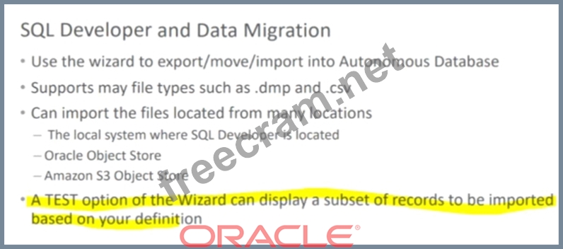 Question 20: Which two cloud services are supported to import Data Pump f...