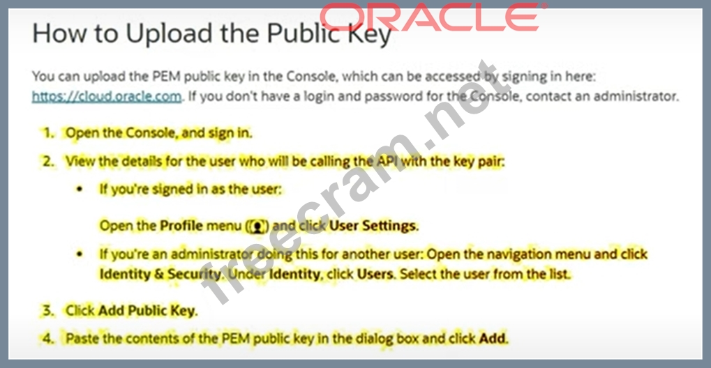 Question 86: Where can a user's public ssh key be added on the Oracle Clo...