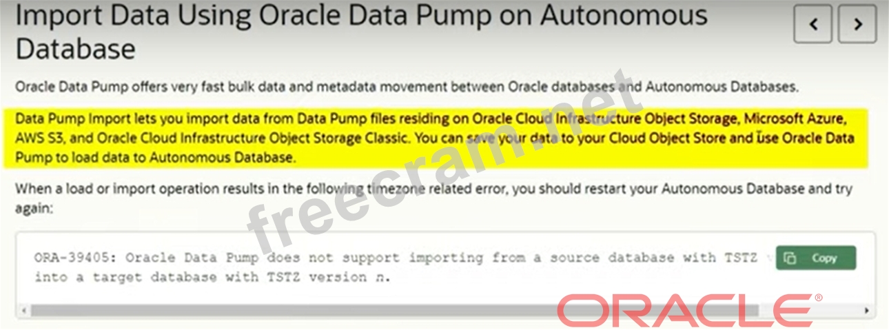 Question 20: Which two cloud services are supported to import Data Pump f...