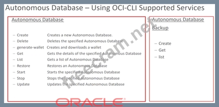 Which is the correct subset of services offered via OCI-CLI (command line interface) for Autonomous Database (ABD) via calls made to the OCI API's?