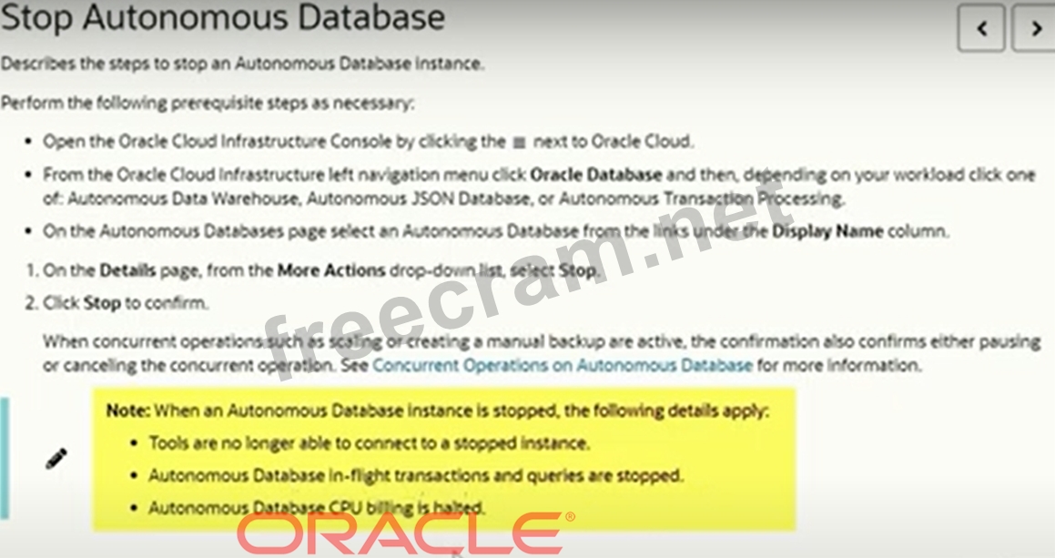 Question 89: Which statement is not correct when the Autonomous Database ...
