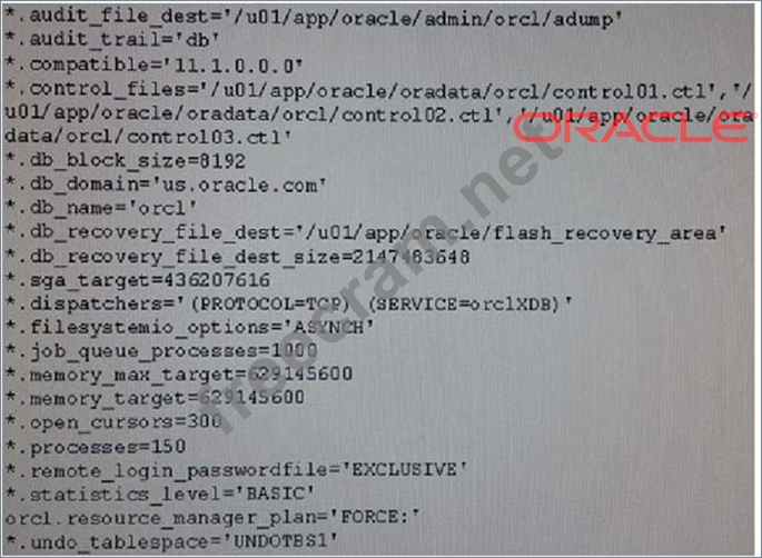 Question 73: View the SPFILE parameter settings in the Exhibit. (Exhibit)...