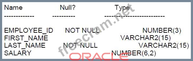 Examine the description of the EMPLOYEES table: Which two statements will run successfully?