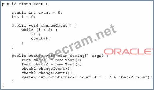 Valid 1z0-808 Dumps shared by ExamDiscuss.com for Helping Passing 1z0-808 Exam! ExamDiscuss.com now offer the newest 1z0-808 exam dumps, the ExamDiscuss.com 1z0-808 exam questions have been updated and answers have been corrected get the newest ExamDiscuss.com 1z0-808 dumps with Test Engine here: