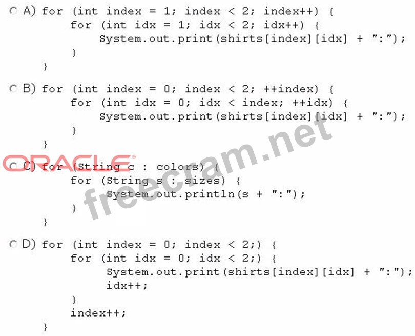 Question 5: Given the code fragments: (Exhibit) Which code fragment, whe...