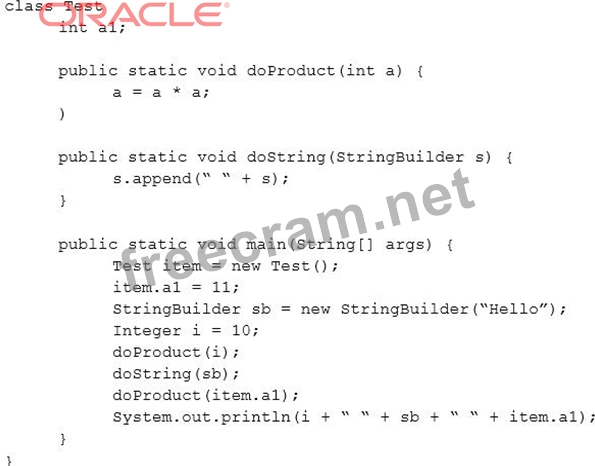 Question 37: Given the code fragments: (Exhibit) What is the result?...