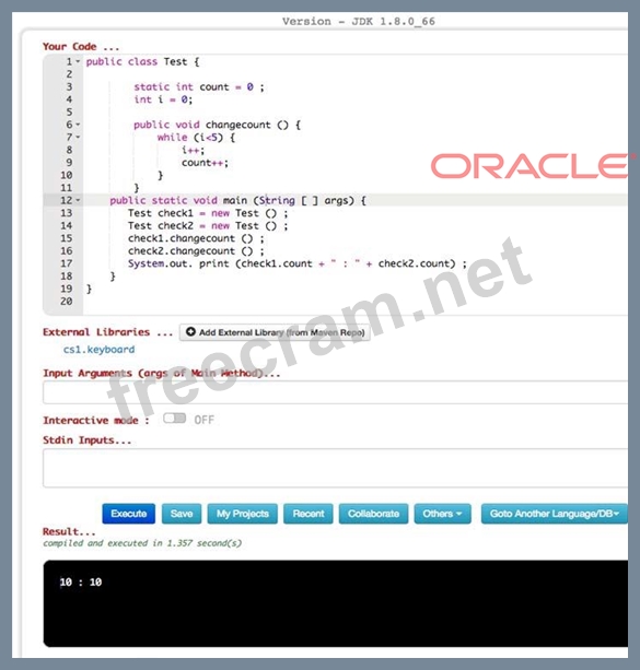 Question 65: Given the code fragment: (Exhibit) What is the result?...