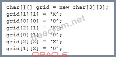 Which line of code, when inserted in place of //line n1, adds an X into the grid so that the grid contains three consecutive X's?