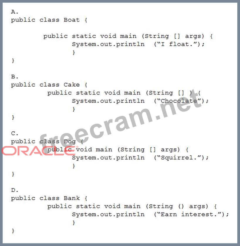 Question 4: Which two class definitions fail to compile? (Choose two.) A...