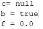 Question 71: Given the following code: (Exhibit) What are the values of e...