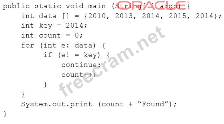 Valid 1z0-808 Dumps shared by ExamDiscuss.com for Helping Passing 1z0-808 Exam! ExamDiscuss.com now offer the newest 1z0-808 exam dumps, the ExamDiscuss.com 1z0-808 exam questions have been updated and answers have been corrected get the newest ExamDiscuss.com 1z0-808 dumps with Test Engine here: