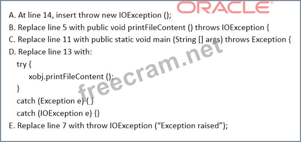 Question 3: Given the code fragment: (Exhibit) Which two modifications, ...